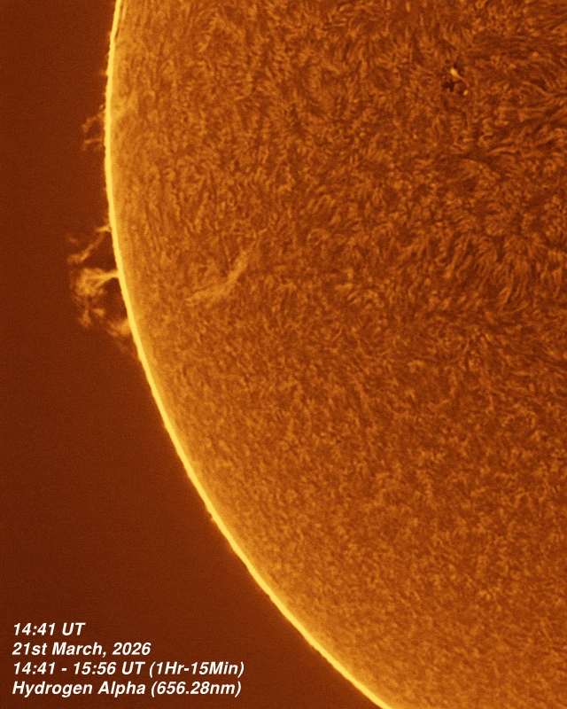 21st March 2026 - Eastern Limb 21st March, 2026 - Sun in Hydrogen Alpha